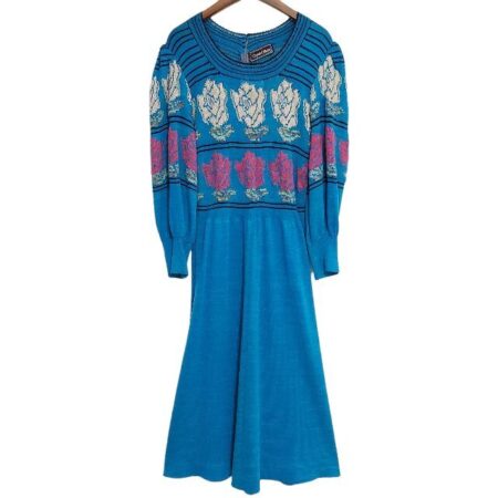 斉藤都世子のワンピースを買取しました!高品質な雰囲気の青色、薔薇が見事にマッチしたワンピースです。ラインもしなやかで見れば見るほど深みにはまってしまいそう。温かみを大事にしつつエレガントに決めたい方にはおすすめです。