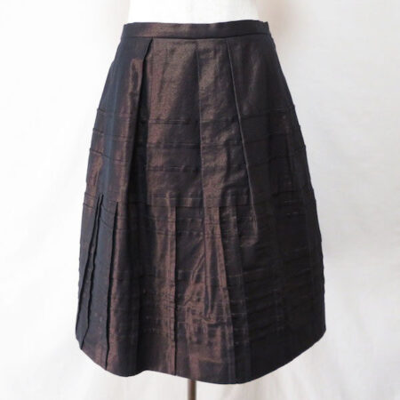 宅配買取ご利用のお客様よりユキトリイのスカートを買取しました。サイズは38です。エレガントさを出してくれるブロンズカラー。丈も短めなので、くどくなく履いていただけます。トップスが甘すぎていても気にせず使っていただけるのもgood。
