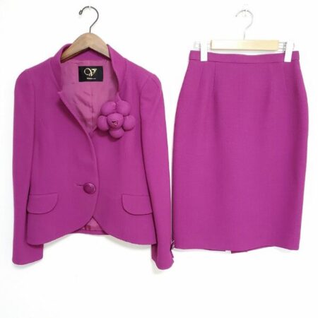 大人女性人気があるベラ。この度はスカートスーツを買取しました。出張買取です。何といっても明るく輝く様な紫が素敵。コサージュもついてきて言うことなしの輝きを放ってくれます。