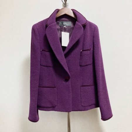 イネス 銀座マギーのジャケットを出張買取にて買取しました。サイズは42です。上品な素材の代表ともいえるベルベット。紫も明るく上品なので綺麗な女性に仕上げるのには最適です。