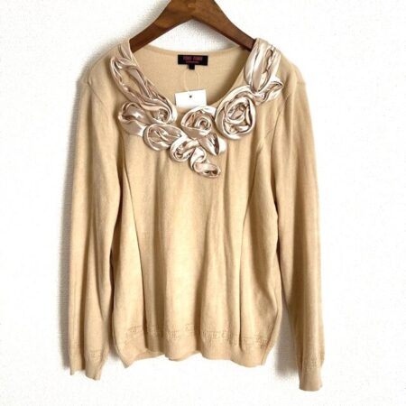 出張買取にてユキトリイのセーターを買取しました。安定感あるベージュに個性的な花モチーフが綺麗に咲く1点。豪華さも適度に出してくれます。