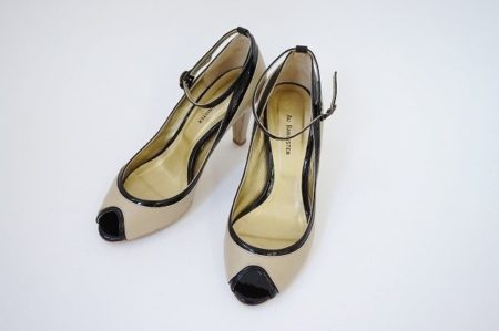 オウバニスターベージュのパンプス・サイズ36を出張買取にて買取しました。肌なじみのよいベージュに程よいバランスで黒の淵を付けているのがポイントです。ダークカラーの洋服を着た場合でも、足元を爽やかに決めることができる1足です。
