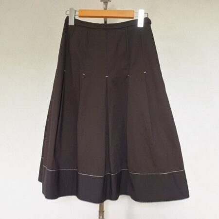 人気ブランド、レリアンのスカートを買取しました。サイズは7です。丁度いい広がりを見せるボックスプリーツスカート。こげ茶の色味でどこか重量感もあり、堂々とした女性の印象を作り上げてくれます。