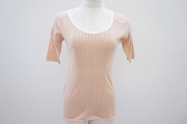 こちらのカットソーはピンク系なので、可愛らしくもあります。ボディラインにピッタリフィットしており、縦のラインも入っているので、体型カバーもバッチリです。