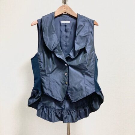 コーザノストラのジレを買取しました。買取方法は出張買取です。ボリュームがあるフリルが可愛くてたまらない1点。可愛さだけでなくカシミヤ素材の機能性にも注目したい1点。