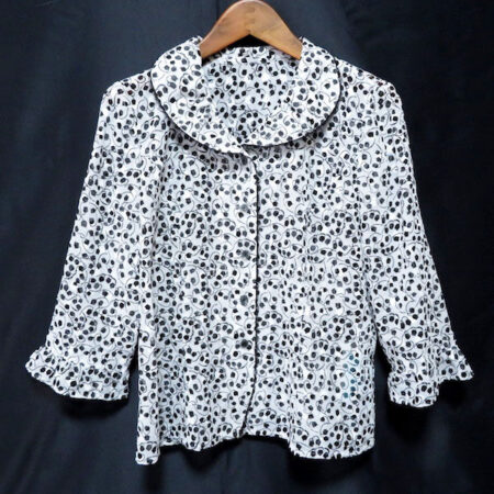 出張買取にてレリアンのジャケットを買取しました。7号サイズです。丸いシルエットで可愛らしさを表現。黒と白ですが明るくどこかポップな花柄も印象的ではないでしょうか。