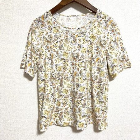 出張買取にてレリアンのカットソーを買取しました。黄色ベースのペイズリーが可愛らしくポップな1着。ゆるいデザインなので、リラックスしつつ上品に着ていただけるかと思います。