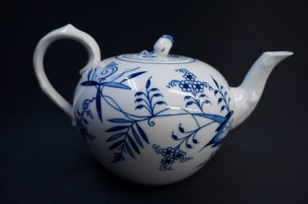 今回、買い取りさせていただいたのは、中古と言ってしまうにはもったいないクオリティのブルーオニオンシリーズのティーポットとシュガーポットのセットです。
