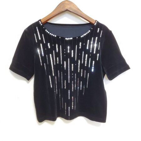 出張買取サービスにおいてマダムジョコンダのカットソーを買取しました。サイズは11です。クロップドの丈感が新しいお洋服。黒地にビーズやスパンコールがマッチして輝かしい雰囲気に仕立ててくれます。