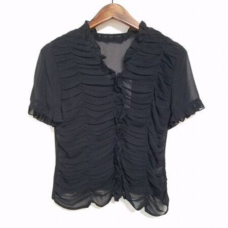 出張買取にてマダムジョコンダのカットソーを買取しました。サイズは9号です。黒×シースルーですがフリルがあることで程よい厚みを感じさせてくれます。柄がなくても華やかに決められる1点。