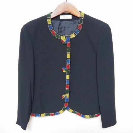 店頭預り買取にてマダムジョコンダのジャケットを買取しました。短めの丈感、黒のカッコよさにビーズの鮮やかさがマッチしています。どこか丸みをおびた感じもいいですね。