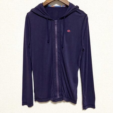 出張買取にてマドモアゼルノンノンのパーカーを買取しました。濃くかっこいい紫色がなんとも言えません。生地はしっかりアンゴラなので機能性も抜群です。ニットの代わりとしてもいかがでしょうか。