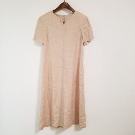出張買取にてマドモアゼルノンノンのワンピーを買取しました。麻素材という自然な素材を使用しているのも〇。綺麗ながらも柔らかく着ていただけます。ベージュの肌なじみがいい部分も評価ポイント。いろいろなシーンでお楽しみください。