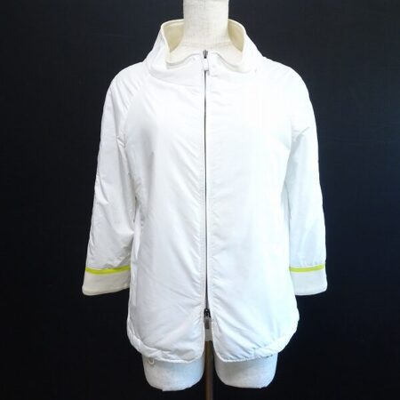マーロのブルゾンを買取しました。サイズは38です。白のすっきり感が出ていてスタンドカラーでカッコよさも仕上げられる1枚。七分袖ですので長いシーズン着ていただけます。