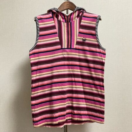 出張買取にてミエコウエサコのカットソーを買取しました。ボーダーが可愛めなカラーを使用しております。しかしどこかシックで落ち着く面も持ったお洋服です。フードもしっかりついていてしっかりした着ごたえがあります。
