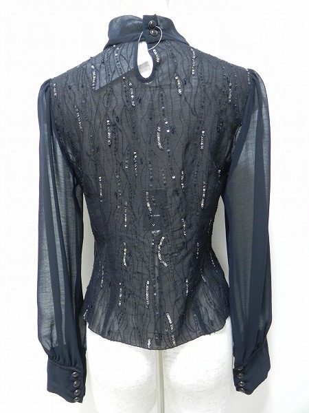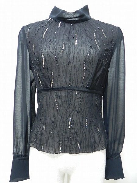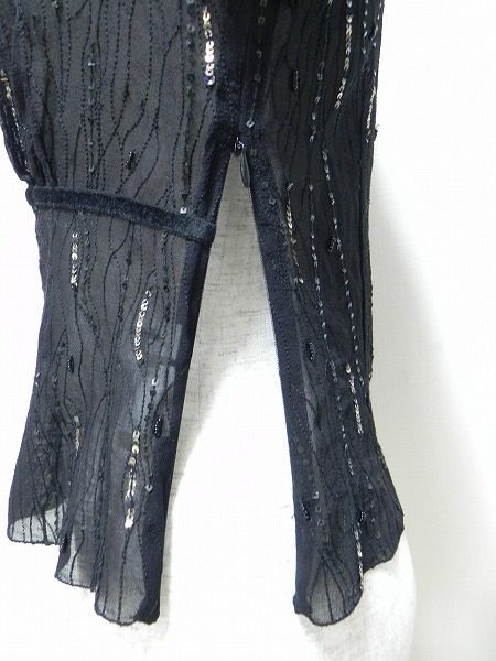 こちらの黒のオーガンジーのカットソーは、繊細な刺繍とスパンコールが施された気品溢れるアイテム。