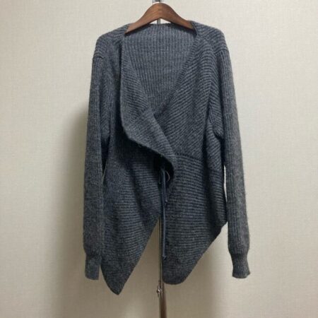 メフウセンソユニコのカーディガンを出張買取ご利用のお客様より買取しました。濃いめのグレーではっきりとしつつも程よい柔らかさを出していただけるカーディガンです。アルパカが入っているのも嬉しい特徴。