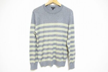 ベーシックに着られるグレーニットに、明るい色のボーダーをあしらいました。