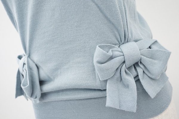 同じニットの素材で本当に結んで立体的に作られた大きなリボンが両サイドに付いています。このリボンは可愛らしさをプラスしてくれるだけでなく気になるウエスト部分をさりげなくカバーしてくれるのでありがたいですね。