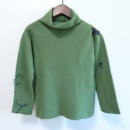 ヨーガンレールのニットを買取しました。心安らぐようなグリーンに癒される1枚。タートルデザインもキュッとしすぎず程よい緩さを保ちながら着ていただけます。