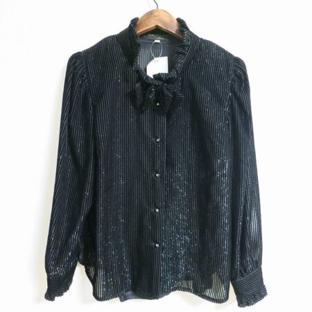 大人女性からの評価が高いレリアンのシャツを買取しました。サイズは13です。スタンドカラーでおしゃれ度をアピール、煌びやかなラメが大人シックな雰囲気を盛り上げてくれます。色物を着るほど派手ではないので程よい豪華さを出したい方におすすめです。