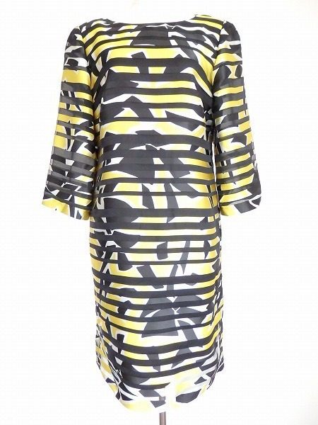 イエロー×ブラックの一見派手すぎる配色の組み合わせながら、柔らかめの色使いにまとめることで派手すぎない存在感ある一着に仕上げています。
