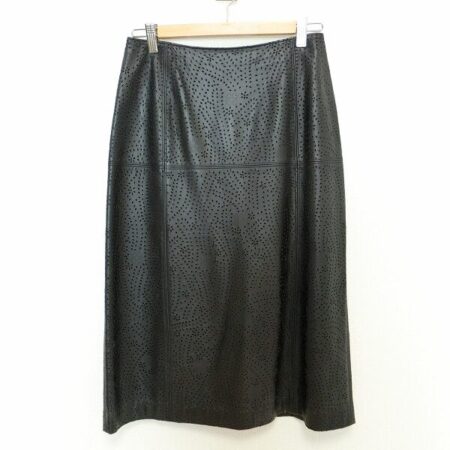 出張買取にてマダムジョコンダのスカートを買取しました。サイズは9号です。ラムレザーとパンチングデザインのコラボレーションがカッコイイ1枚。レザーだけでは圧が強すぎますがパンチングを取り入れることにより軽さが出ます。