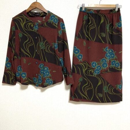 人気ブランド、詩仙堂のセットアップを買取しました。茶色と緑色の組み合わせが唯一無二の味わいを出してくれています。重ね着風という特長も人とは被らないおしゃれな印象に導いてくれますね。