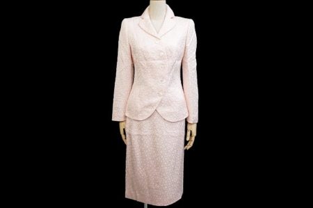 ピンク色が華やかな印象を与えてくれる、レナランゲのスーツを買い取りさせていただきました。