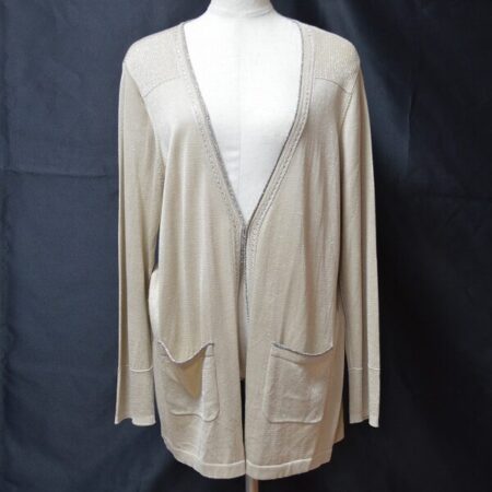 レリアンのカーディガンを出張買取ご利用のお客様より買取しました。シルクの優しい印象、落ち着いたベージュが使える幅を広げてくれます。豪華な柄物の上から、シンプルな白シャツの上からもいいですね。トップスだけでは不安な時に持ち歩くのにも便利かと思います。