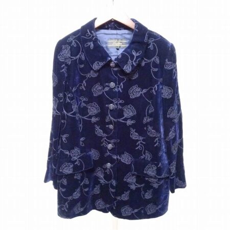 出張買取でレリアンのジャケットを買取しました。紺ベース、そしてベロアの風合いが心を落ち着かせてくれる1枚です。アクセサリーなどに頼らなくても上品さを盛り上げてくれる素晴らしい1着ではないでしょうか。