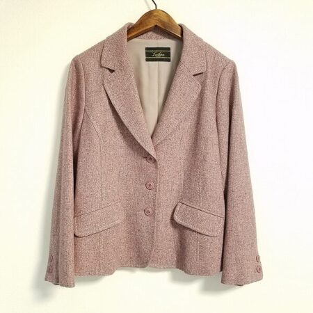 出張買取にてレリアンのジャケットを買取しました。サイズは13です。ピンクの可愛らしさとグレーのカッコよさが混じったジャケット。落ち着きと柔軟さが際立ちます。デザイン自体もメリハリがありかっこいいですね。