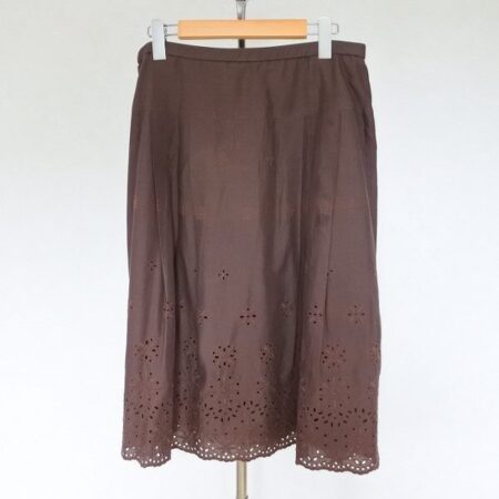レリアンのスカートを買取しました。宅配買取を活用してご依頼くださった方のお洋服です。程よい明るいブラウンのスカート。カットワークで軽さも感じさせてくれます。