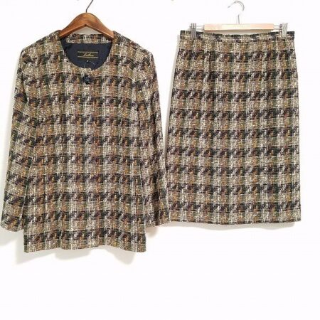 大人女性から人気の高いレリアン。スカートスーツを買取しました。出張買取です。茶色ベースとしていますが暗すぎず綺麗な雰囲気を演出していただけます。