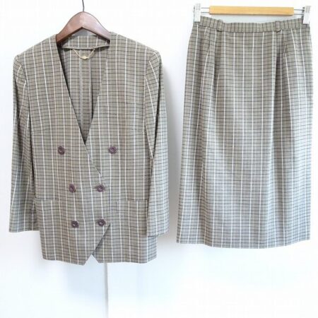 出張買取でレリアンのスカートスーツを買取しました。サイズは9です。ドイツ製の生地を使用したノーカラーのダブルスカートスーツ。あか抜けた感じがしっかりとあります。シングルスーツよりも軽めなので気楽な気持ちで少し引き締めたい時にも活用できそうです。