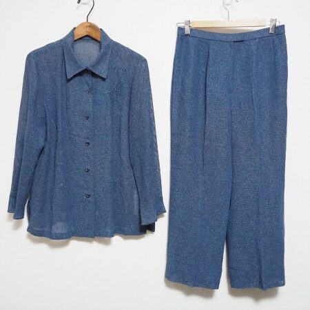 出張買取にてレリアンのセットアップを買取しました。紺ならではの上品さを保ちつつ、どこかスッキリした印象に仕上がるセットアップです。ジャンル問わず合わせられて可能性を感じるお洋服ではないでしょうか。