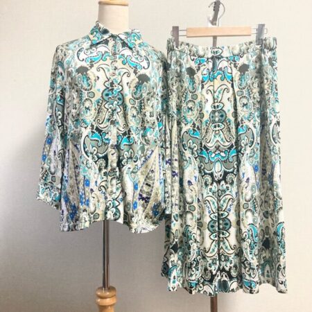 レリアンのセットアップを買取しました。トップス部分は七分袖でごちゃ付き過ぎない印象にしてくれます。全体的にふわっとしてはいますが、スリムな雰囲気漂う1点です。