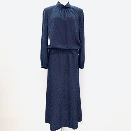 レリアンのセットアップを買取しました。サイズは7号です。水玉と紺色の間違いない組み合わせが光るセットアップ。デザインもしっとり可愛らしくまとまった雰囲気があります。