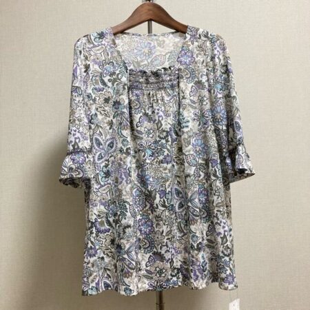 出張買取サービスにてレリアンのチュニックを買取しました。白でさわやかな雰囲気が際立つボタニカル柄。大人ながらもスマートにも決めていただけます。