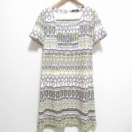 特徴的な柄がポイントのワンピース。ブランドはレリアンです。出張買取にて買取しました。柄は強めですが色が優しく穏やかなためどこか優雅に着ていただけます。上からGジャンやパーカーを合わせれば春、秋にも大活躍!