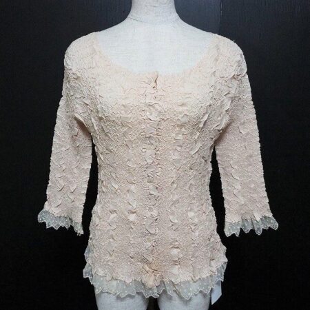 出張買取でユキトリイのブラウスを買取しました。レースのきめ細かさに脱帽です。ふんわりしつつも肌に優しくフィットします。デコルテも綺麗にあいて丁度良い色っぽさが出る1枚です。