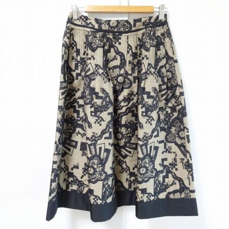 当店でよくご相談いただく出張買取にてヒロココシノのスカートを買取しました。ベージュ系ですが、黒のはっきりとしたレースがおしゃれさを引き立ててくれます。くっきりしすぎていないフレアデザインも見逃せないポイントです。