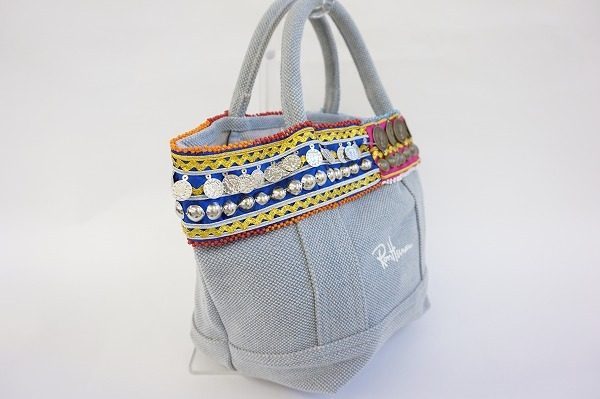 今回お売りいただいたのは、バッグのトップ部に大胆にあしらわれているコインが印象的なトートバッグです。