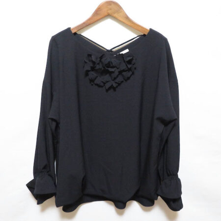 出張買取でローズティアラのカットソーを買取しました。サイズは46です。黒の締まりを感じつつ胸元のキュートな装飾も素敵なお洋服。ちょっとしたおしゃれにぜひ着ていただきたいです。