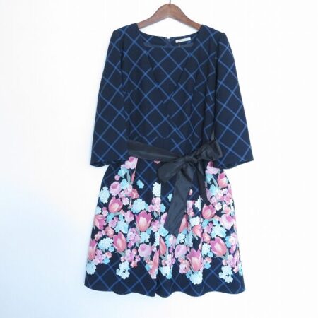 店頭預り買取にてローズティアラのワンピースを買取しました!未使用品、花柄とリボンがとにかく素敵なワンピースです。紺色にカラフルなお花が良く映え引きつけられてしまいますね。