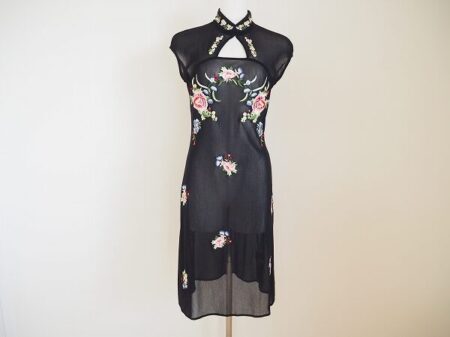 ヴィヴィアンタムのワンピースを出張買取ご利用のお客様より買取しました。ヴィヴィアンタムのデザイナーは中国の広東省生まれ。チャイナドレスのようなデザインのワンピースはヴィヴィアンタムならではです。黒でシャープに仕上げながら可愛いバラをバランスよく散りばめた1枚。色っぽさを出しつつも上品な印象を与えます。