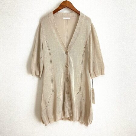 出張買取にてコーザノストラのカーディガンを買取しました。ワンピースのような可愛らしくまとまりある感じも嬉しいお洋服。袖部分も丸みをおびており、柔らかさを表現していただける1点です。