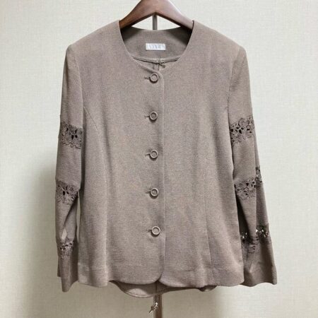 三年坂のアンサンブルを買取しました。買取方法は出張買取です。綺麗めな雰囲気なアンサンブル。茶色も程よく落ち着きを放ってくれます。ちりめん素材で軽く動きやすいのもおすすめポイントです。