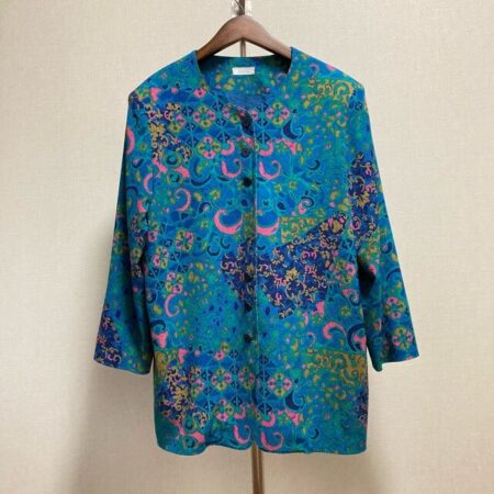 三年坂のジャケットを出張買取ご利用のお客様より買取しました。遠くから見ても輝いて見える色味が素敵。長さもあるのでゆったりしつつ綺麗に上品に演出してくれます。