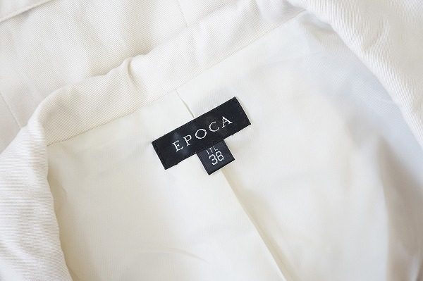 こちらのジャケットはエポカのものです。しっとりとした落ち着いた色合いが、まさに大人の女性という雰囲気です。スタイリッシュなトレンチテイストのデザインに、ボタンのクラウンモチーフがかわいさをプラスしています。